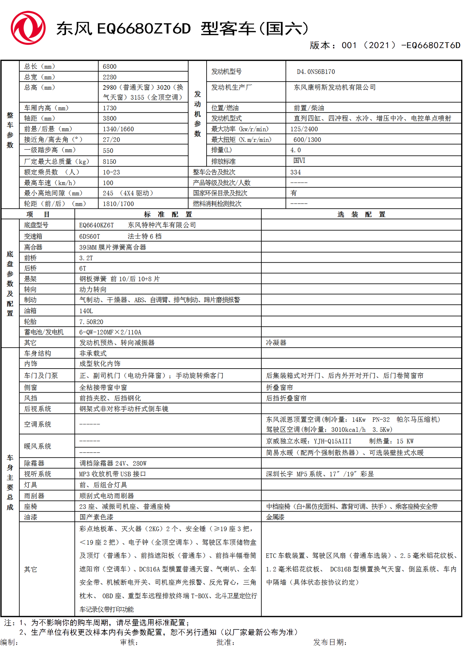 东风 6.8m 国六新款客车 六档变速箱 环保高效
