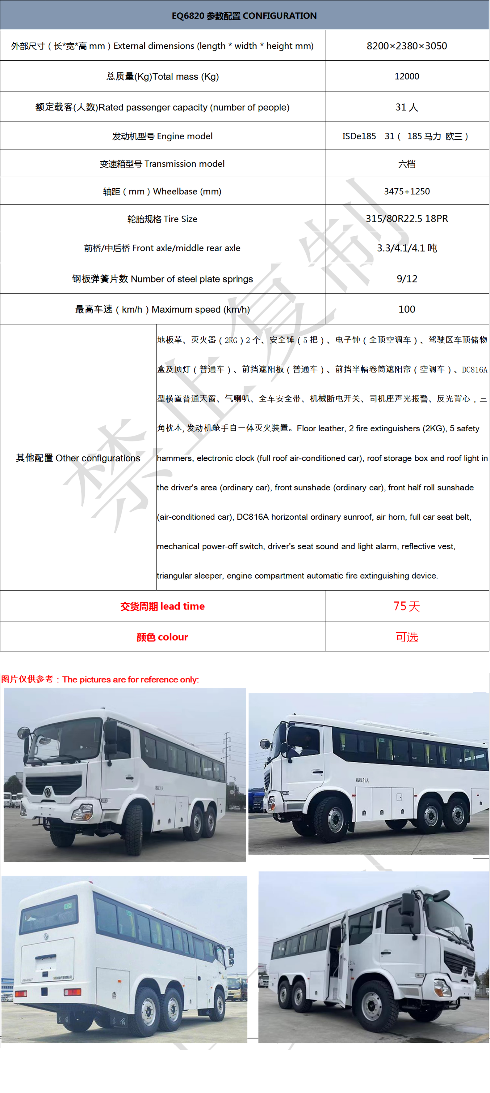 东风6X6六驱客车31 座 加厚底盘 耐用型