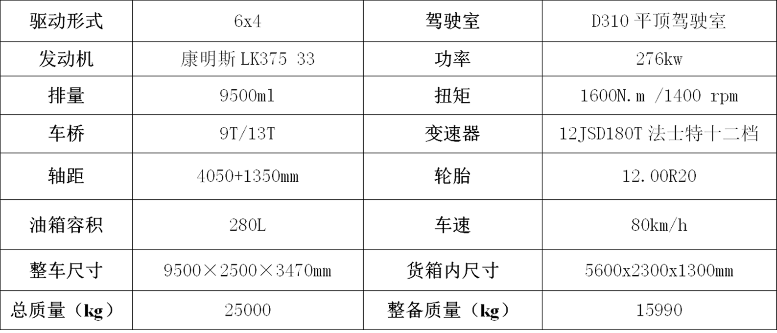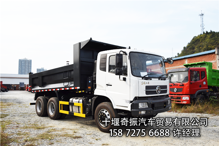 东风6X4右舵自卸车 平顶驾驶室 康机375马力