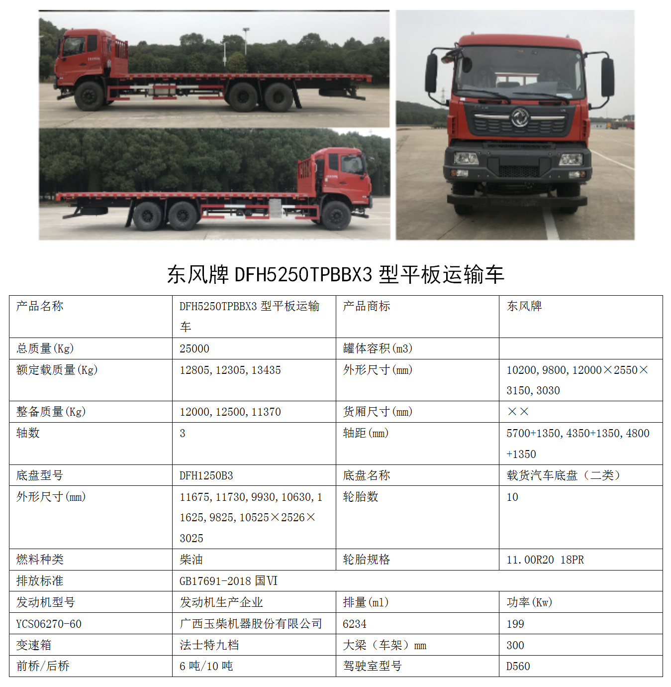 东风6X4平板运输车 九档变速器 城乡基建/工地转场