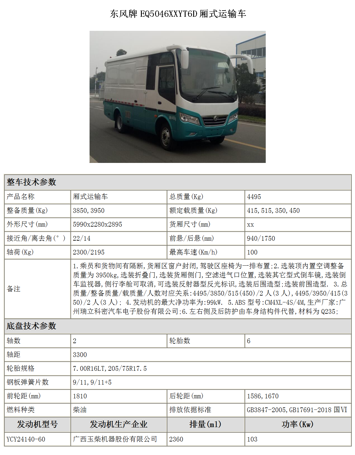 东风4X2蓝牌厢式货车5.9m 轻量化车架 蓝牌合规