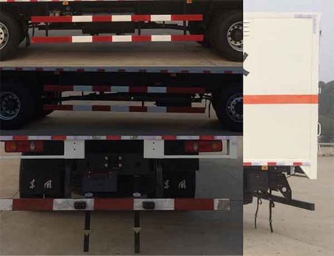 整车说明: | 仅用底盘10.00R20 ,295/80R22.5 轮胎。选装导流罩。厢体顶部封闭,不可开启。厢体选装瓦楞和平板结构, 厢体侧面选装开门和不开门,厢体颜色可选,厢体侧面选装通风窗。后门选装瓦楞结构和通风窗,选装升降尾板。侧防护:材质Q235,螺栓连接;后下防护:材质Q235,螺栓连接,断面尺寸120X60mm,离地高度540mm;安装具有卫星定位功能的行驶记录仪..装有ABS,ABS型号:3631010-C2000,生产厂家:东科克诺尔商用车制动系统(十堰)有限公司. 排气管前置,装前轮盘式制动器,装限速装置,限速80km/h.运输介质:易燃气体气瓶,类项号:2.1;选装非易燃无毒气体的气瓶,类项号:2.2.尾板收起状态的水平长度为300mm。 | ||