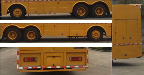 | 整车说明: | 该车厢体为整体封闭式且顶部密封不可开启。随底盘选装驾驶室、前面罩、导流罩、前保险杠及前部灯具、驾驶室顶部装饰灯、前雾灯、前围扰流板、卧铺侧窗装饰板,选装不同数量及位置的工作门、上翻门、百叶窗,选装顶部升降照明灯,选装场地照明灯,车厢前端设有爬梯。厢体后部选装后下部对开门时上部可选装上掀门;厢体后部选装整体对开门。车厢两侧分别选装检修和操控侧开门,选装两侧上掀门、观察窗。车厢中部设有翻转蹬梯、电力输出箱及工具箱。车厢内固定装置为发电机组等供电电源系统。侧、后防护均为裙板式结构,材料Q235钢,后防护下缘离地高度500mm。该车装有ABS,ABS生产厂家:东科克诺尔商用车制动系统(十堰)有限公司,型号:3631010-C2000。车长/前悬/轴距/后悬对应关系为:11985/1500/1995+4600+1350/2540;11485/1500/1995/4600+1350/2040;10985/1500/1995+3800+1350/2340。 | ||